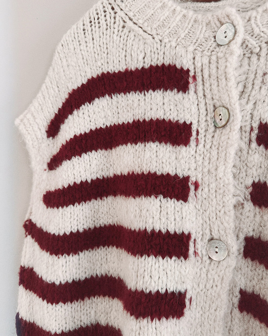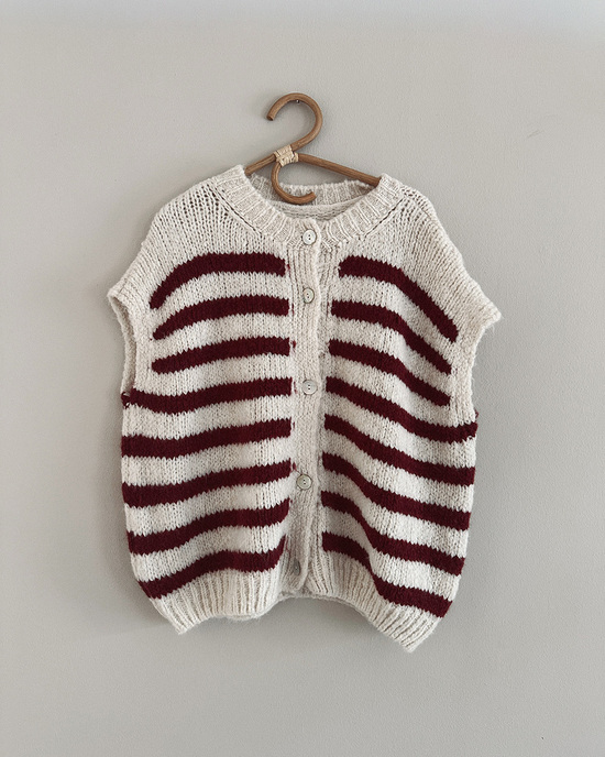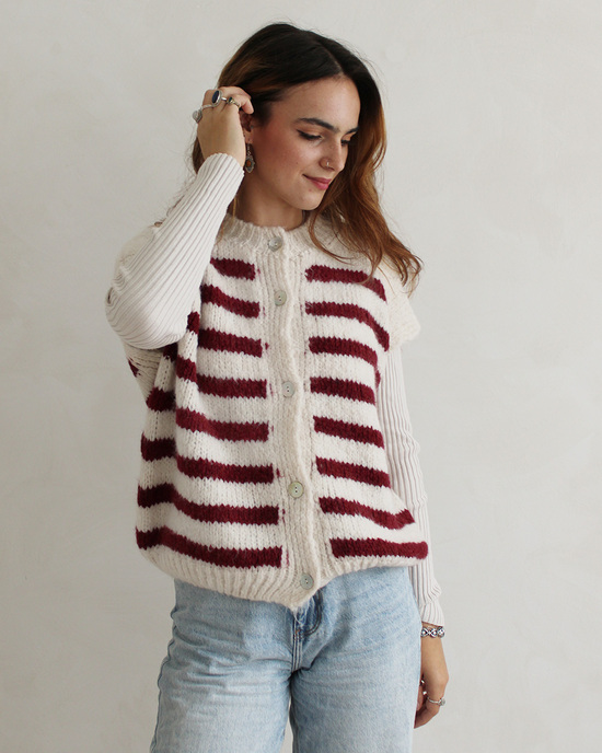 Gestreifte Strickweste in bordeauxrot und beige