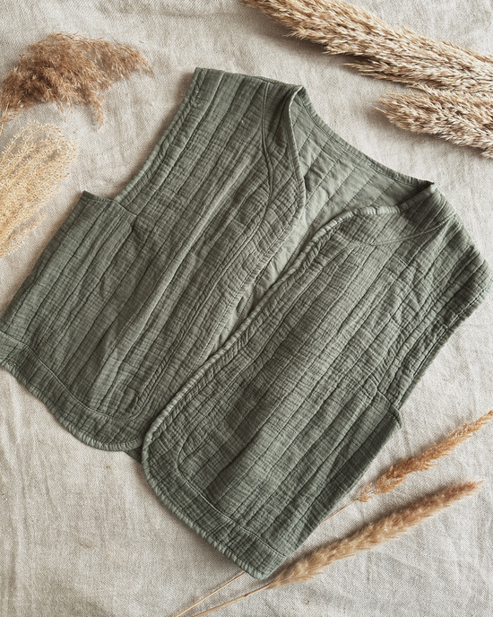 Diese weiche Weste aus Baumwollgaze kannst du mit vielen Outfits kombinieren. Einfach toll für einen Layer- Look. Wertet auch ganz schnell eine einfaches Styling aus z.B. Jeans und beigefarbenen Shirt auf.